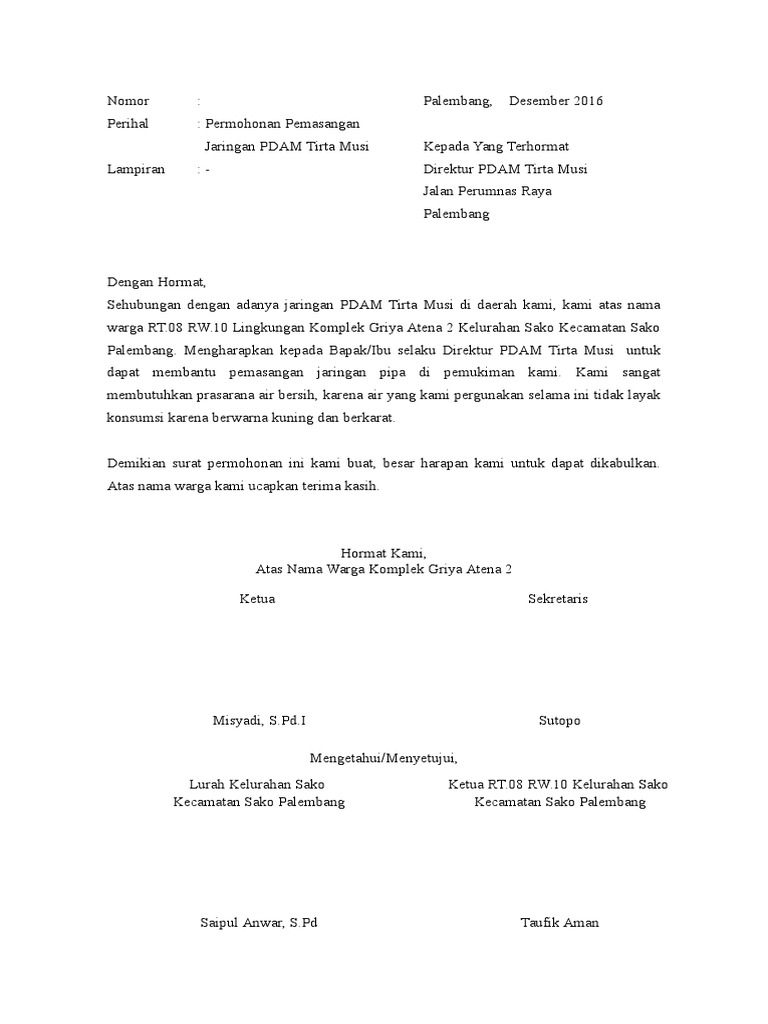 Contoh Surat Rasmi Permohonan Bekalan Air Surat Rasmi O