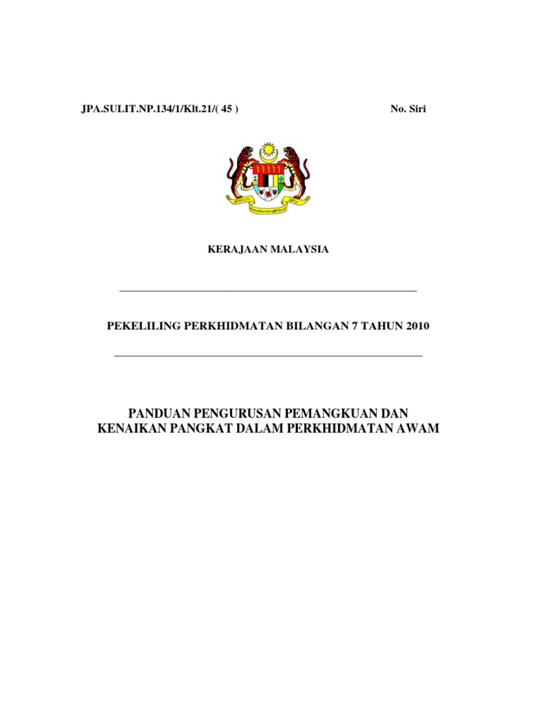 Pp Bil 07 2010 Pekeliling Panduan Pengurusan Pemangkuan Dan Kenaikan Pangkat Dalam Perkhidmatan Awam Pekeliling Terbaru Kerajaan